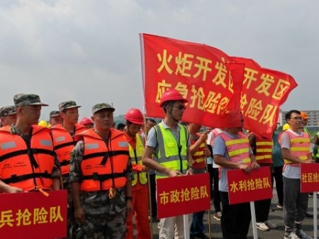 民兵搶險隊積極參加鎮(zhèn)街三防應急演練