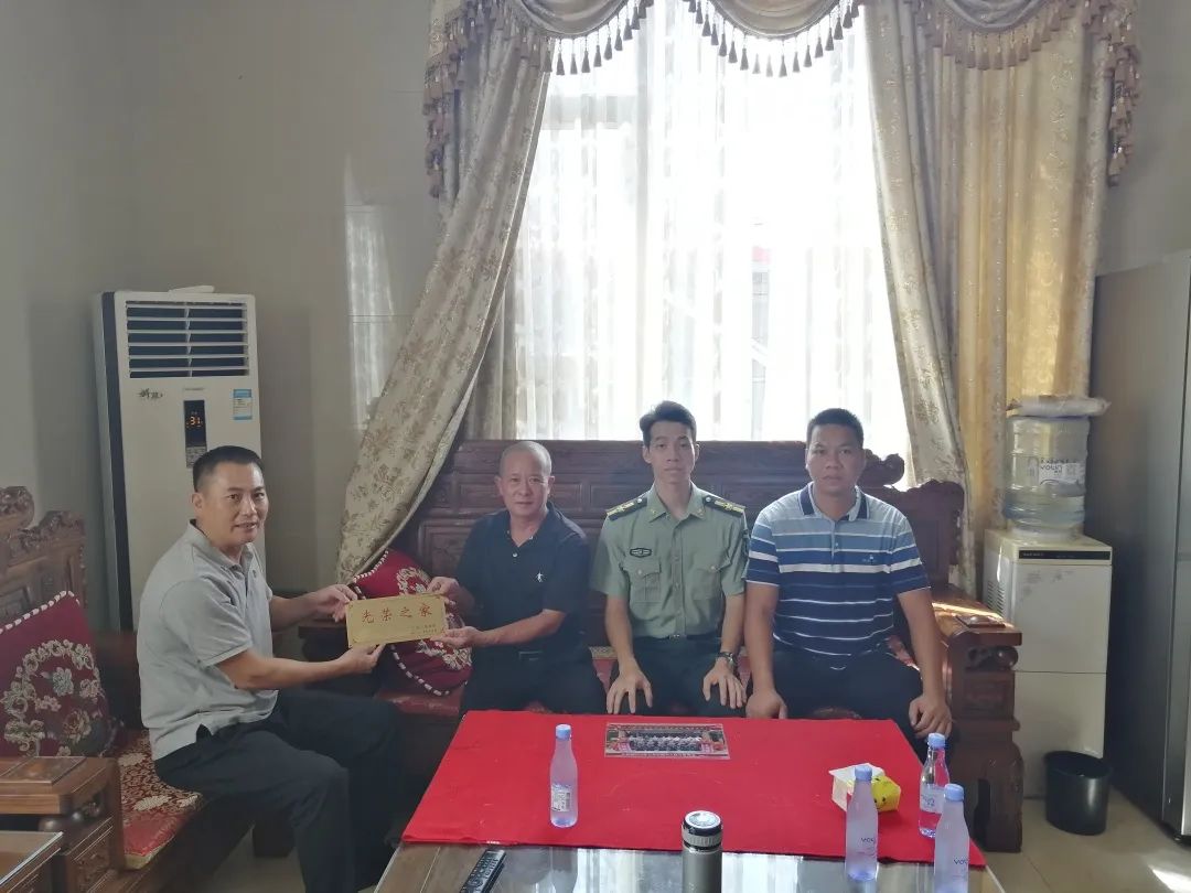為進(jìn)一步鞏固和發(fā)展軍政軍民團(tuán)結(jié),弘揚(yáng)新時(shí)代擁軍優(yōu)屬的優(yōu)良傳統(tǒng),推進(jìn)軍人榮譽(yù)體系建設(shè),營(yíng)造關(guān)愛(ài)軍人的濃厚社會(huì)氛圍,7月15日上午,阜沙鎮(zhèn)武裝部、退役軍人服務(wù)中心聯(lián)合走訪今年入伍的6名新兵家屬,為其家庭懸掛“光榮之家”門(mén)牌,送上入伍電子相冊(cè),了解新兵在部隊(duì)的訓(xùn)練、學(xué)習(xí)和生活情況,增強(qiáng)軍屬家庭的榮譽(yù)感和自豪感,讓他們切實(shí)感受到黨和政府的關(guān)愛(ài)和溫暖。 在新兵周志偉家中,其父親周錦元自豪地說(shuō):“雖然非常舍不得志偉離開(kāi)我們,但是送他到部隊(duì)鍛煉,為國(guó)家作貢獻(xiàn),心里還是很高興的,也非常自豪。今天你們來(lái)給我家掛光榮牌、送相冊(cè),我們?nèi)倚睦锱?,非常感謝黨和政府對(duì)我們的關(guān)心?!?/p>一人參軍,全家光榮 一塊刻著“光榮之家”的小小牌匾 對(duì)軍屬家庭來(lái)說(shuō)卻是一份特殊的“禮物” 牌匾雖小