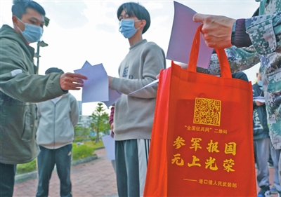 在體檢集合處,“參軍報國,無上光榮”等字眼隨處可見。