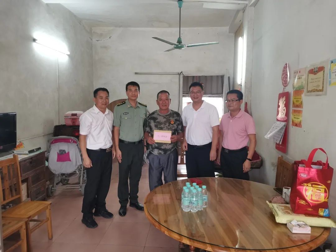 在中國人民解放軍建立94周年來臨之際,為進(jìn)一步弘揚“擁軍優(yōu)屬、擁政愛民”的光榮傳統(tǒng),關(guān)心關(guān)愛軍人軍屬,7月30日上午,阜沙鎮(zhèn)黨委副書記、鎮(zhèn)長李健華帶領(lǐng)公共服務(wù)辦、武裝部、退役軍人服務(wù)中心到現(xiàn)役、退役軍人家中開展慰問活動。