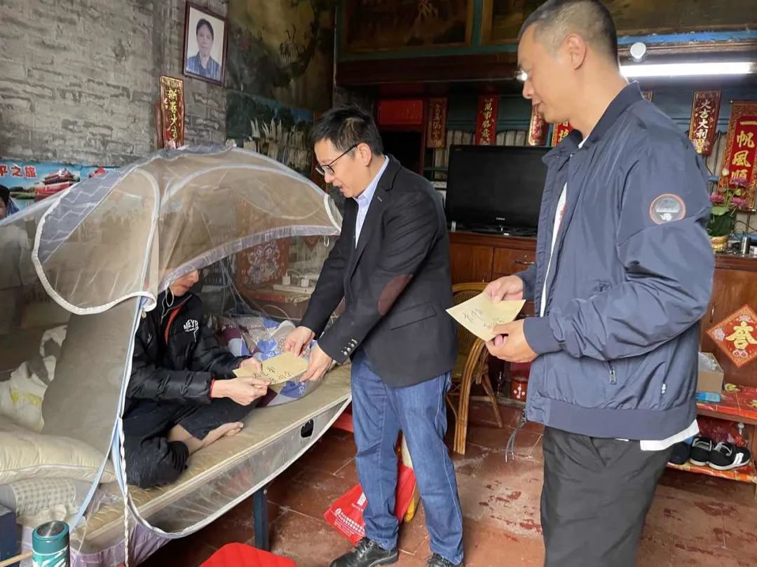 ▲沙溪鎮(zhèn)副鎮(zhèn)長陳嘉毅帶隊(duì)到涌頭村、康樂村走訪慰問