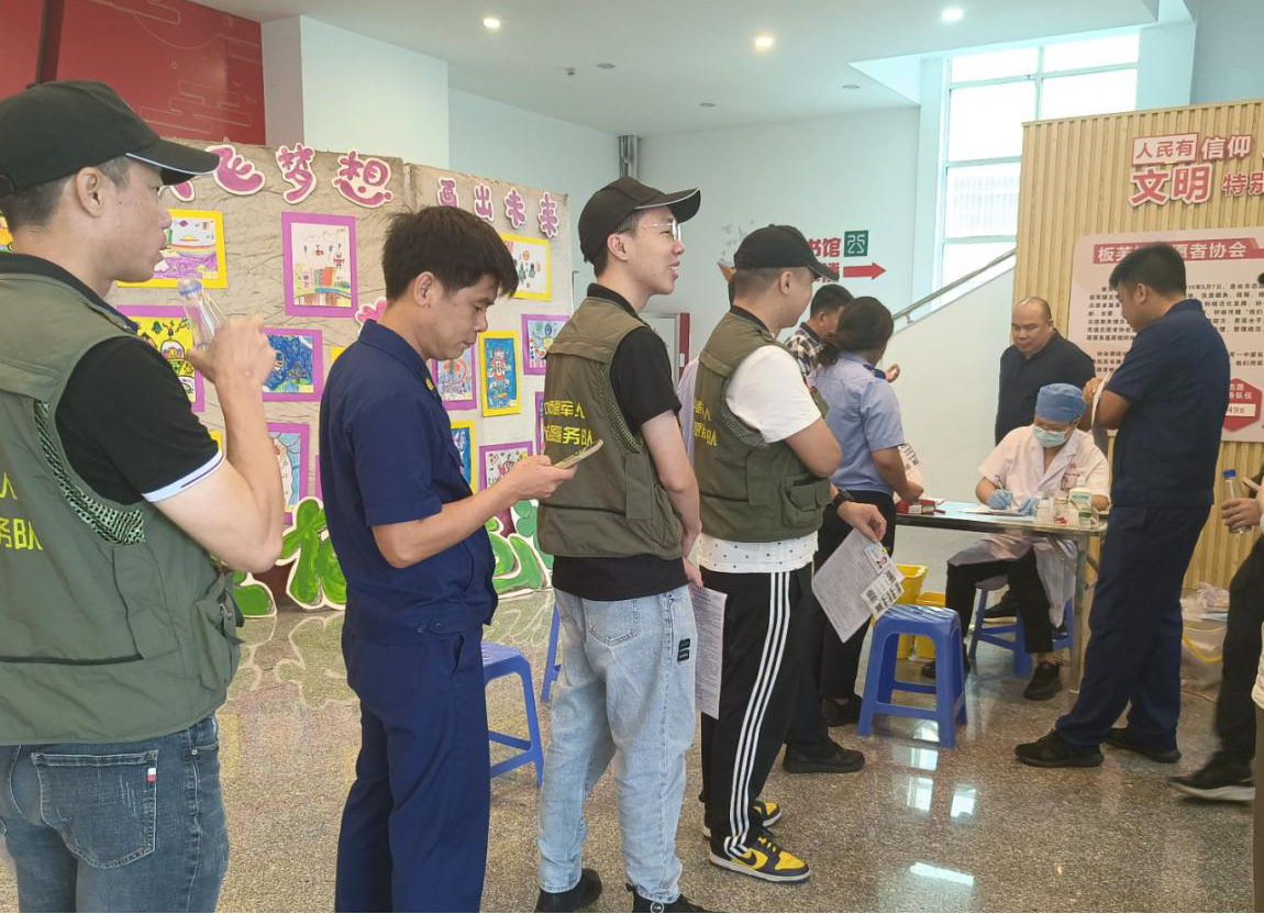 7月3日至4日,板芙鎮(zhèn)連續(xù)兩天在鎮(zhèn)黨群服務(wù)中心開展2023年無償獻(xiàn)血活動。板芙鎮(zhèn)退役軍人服務(wù)中心積極響應(yīng)號召,組織發(fā)動30余名退役軍人紅旗志愿服務(wù)隊隊員參與獻(xiàn)血8000毫升,以實際行動傳遞希望,奉獻(xiàn)愛心。  板芙鎮(zhèn)退役軍人紅旗志愿服務(wù)隊隊員排隊等候無償獻(xiàn)血。