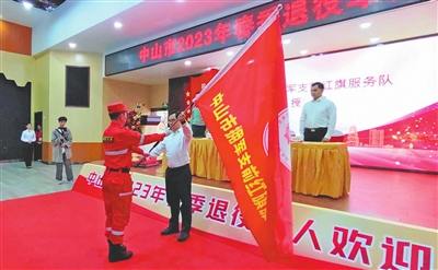 中山市人民政府副市長曾奕給中山市擁軍支前紅旗服務(wù)隊(duì)授旗。 楊啟寧 攝
