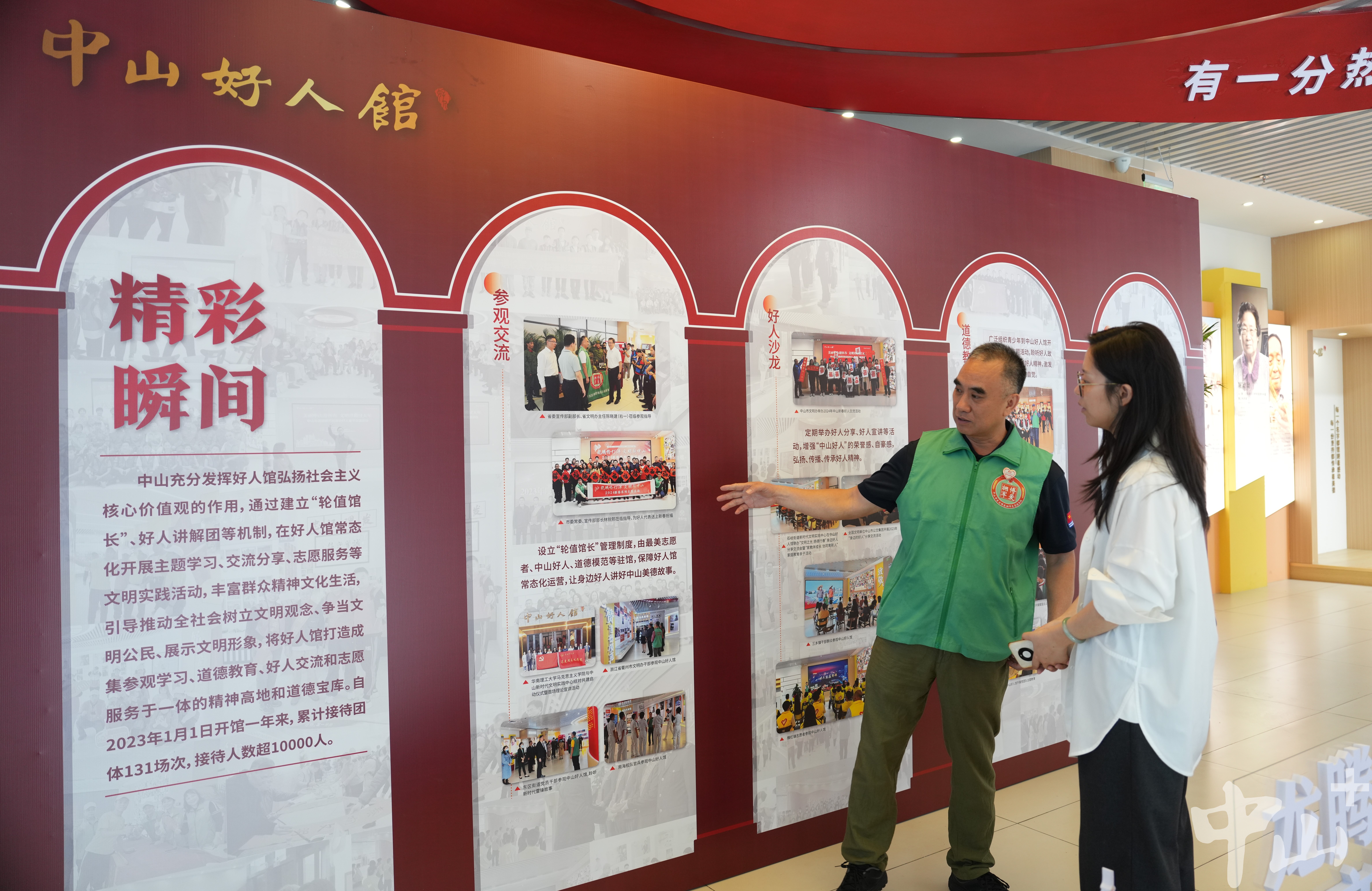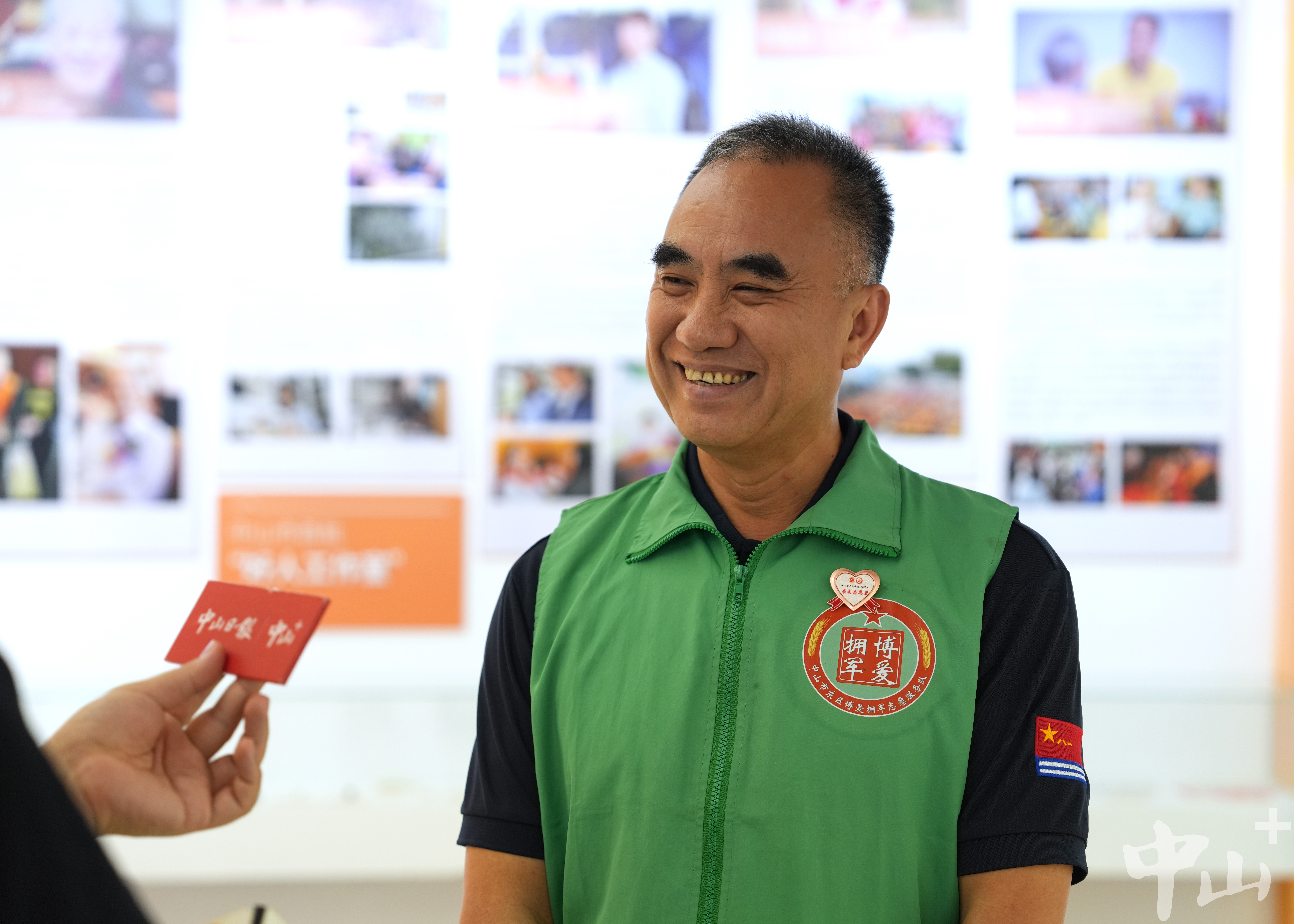作為一名退伍軍人,李克有很多曾一起在戰(zhàn)場上出生入死的戰(zhàn)友,其中不乏已經(jīng)為國捐軀的烈士。自2007年起,他便自發(fā)組織尋找犧牲的中山籍戰(zhàn)友,先后6次帶隊前往廣西邊境的多個烈士陵園,成功尋到29名犧牲戰(zhàn)友信息,并將相關信息報送給中山市退役軍人事務局。 “我有一位戰(zhàn)友,寧愿把生的希望留給其他人,19歲不到就犧牲在戰(zhàn)場上。他們已經(jīng)離我們而去,更重要的是我們能為他們做些什么。所以逢年過節(jié)我都會看望他們的家人,把歡樂也帶給老人家。”李克說。 2016年,得知戰(zhàn)友的女兒患先天性心臟病,須進行心肺聯(lián)合移植手術,李克立即帶頭捐款,并聯(lián)系政府相關部門和電視臺,通過媒體報道讓更多愛心人士關注到了這位困難老兵。在他的多方奔走下,社會各界紛紛伸出援助之手,募集醫(yī)藥費40余萬元,助戰(zhàn)友的女兒順利完成了手術。 牽頭成立志愿服務隊 延續(xù)志愿精神 作為一名有著30多年志愿服務經(jīng)歷的資深志愿者,李克的生活已經(jīng)與志愿分不開。他的身上始終有一抹綠色:在軍營,是守衛(wèi)國門的綠軍裝;在社區(qū),是服務群眾的綠馬甲。在人民群眾需要的地方,李克每次都沖在最前線。 “2020年疫情暴發(fā)時,很多人都響應號召待在家里,我覺得作為一個打過仗的老兵,我總得站出來做點事?!睕]有過多考慮,李克第一時間加入到了志愿者隊伍中,并在社區(qū)堅守了整整60天。當時防護物資匱乏,李克還自掏腰包托人在廣州購買了6萬元左右的防護物資,全部捐贈給了在一線抗疫的工作人員。 近年來,李克還積極捐資助學、支援災區(qū)、扶危濟困,連續(xù)6年資助6名困難學生,為汕尾市陸河中學捐贈10套多媒體電腦設備,堅持參與無償獻血直到60歲。 2018年起,李克擔任文明城市巡查監(jiān)督員,奔走在街道各個路口、每條小巷,整理亂停亂放的共享單車,清理“牛皮癬”小廣告,保障街頭巷尾干凈衛(wèi)生。同一年,為更有組織地開展志愿活動,李克牽頭成立了一支以退役軍人為主導的東區(qū)博愛擁軍志愿服務隊,把戰(zhàn)友們凝聚在一起,共同為社會作貢獻。如今,這支志愿服務隊已從最初的8名成員,逐漸壯大至400多人,成為服務社會的一支生力軍。 講好好人故事,傳承紅色文化 4月19日上午,記者在“中山好人館”見到了正在擔任“輪值館長”的李克。從去年1月開始,他每個月都參與輪值,先后為140多場活動、1萬多名市民群眾義務講解博愛之城的凡人善舉、好人大愛。  正在中山好人館輪值的李克。記者 劉萬杰 攝