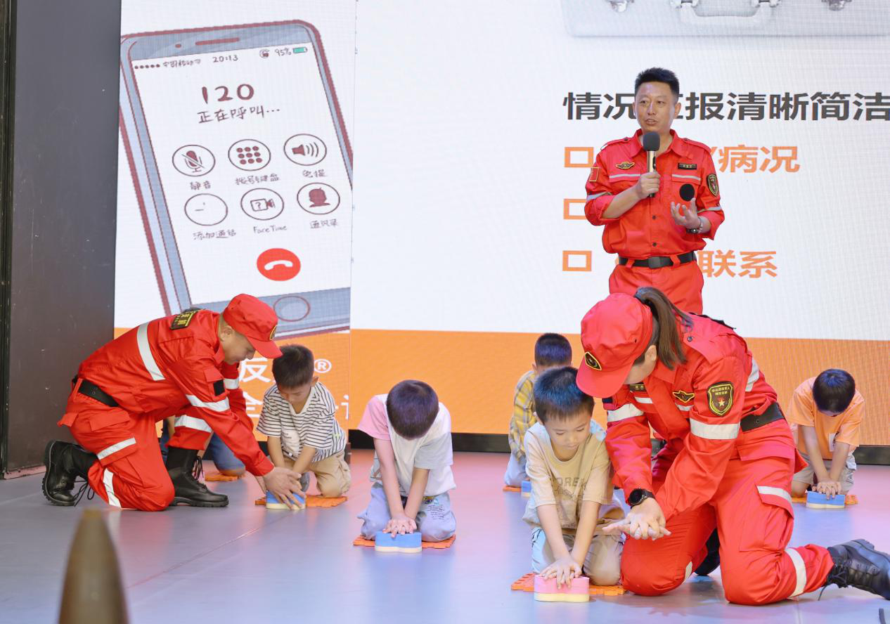 中山市擁軍支前紅旗服務(wù)隊(duì)隊(duì)長(zhǎng)孫宏寧通過(guò)安全教育宣傳片、實(shí)際案例、情景模擬、互動(dòng)問(wèn)答等形式,從應(yīng)急救護(hù)、如何進(jìn)行心肺復(fù)蘇、120呼叫需要提何種信息等與青少年生活息息相關(guān)的內(nèi)容為小營(yíng)友們講授暑期“安全第一課”,讓安全意識(shí)、安全技能深入到在場(chǎng)每位學(xué)生、每個(gè)家庭,希望小營(yíng)友們?cè)诳鞓?lè)過(guò)暑假的同時(shí)安全不“放假”。