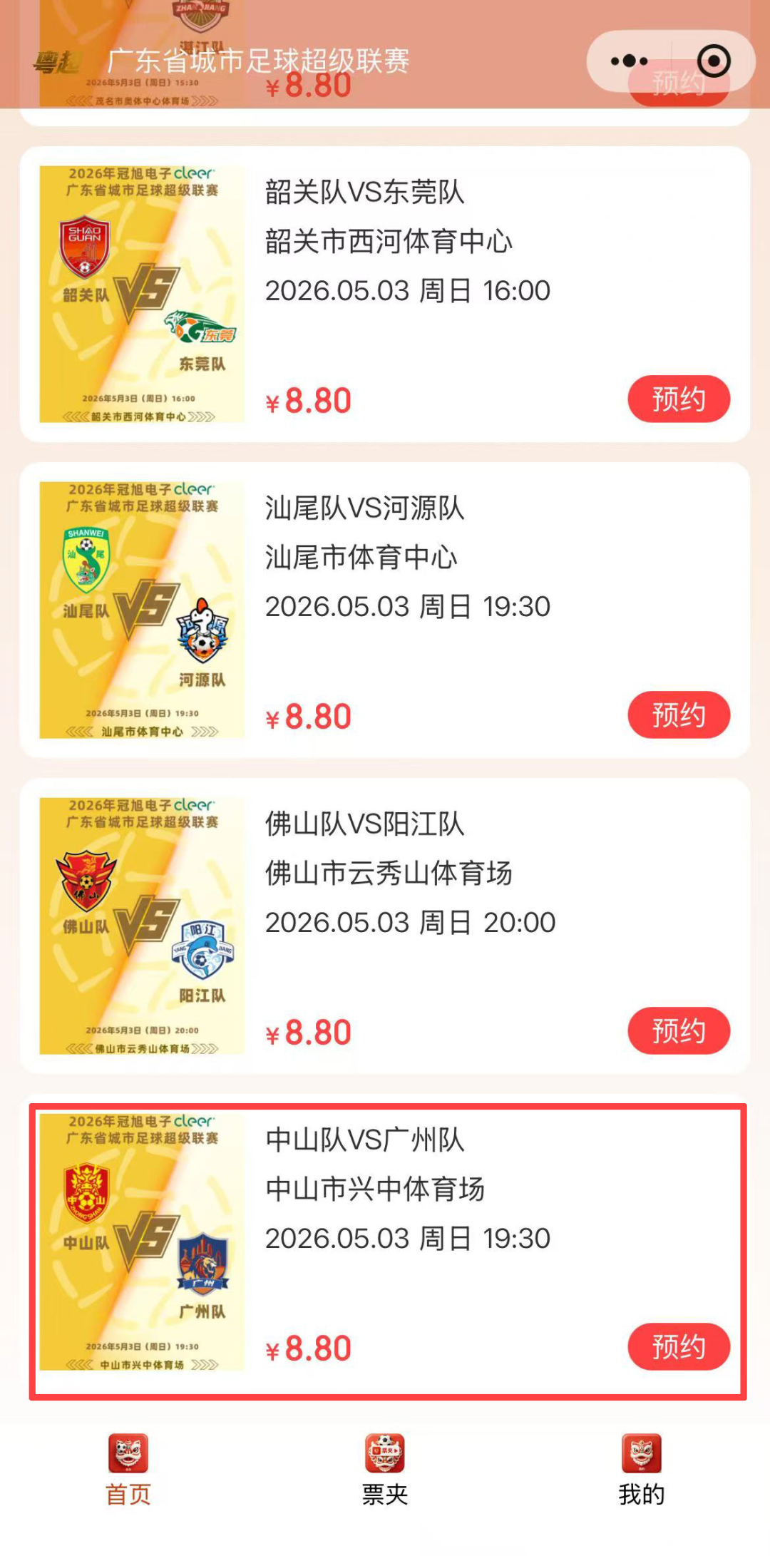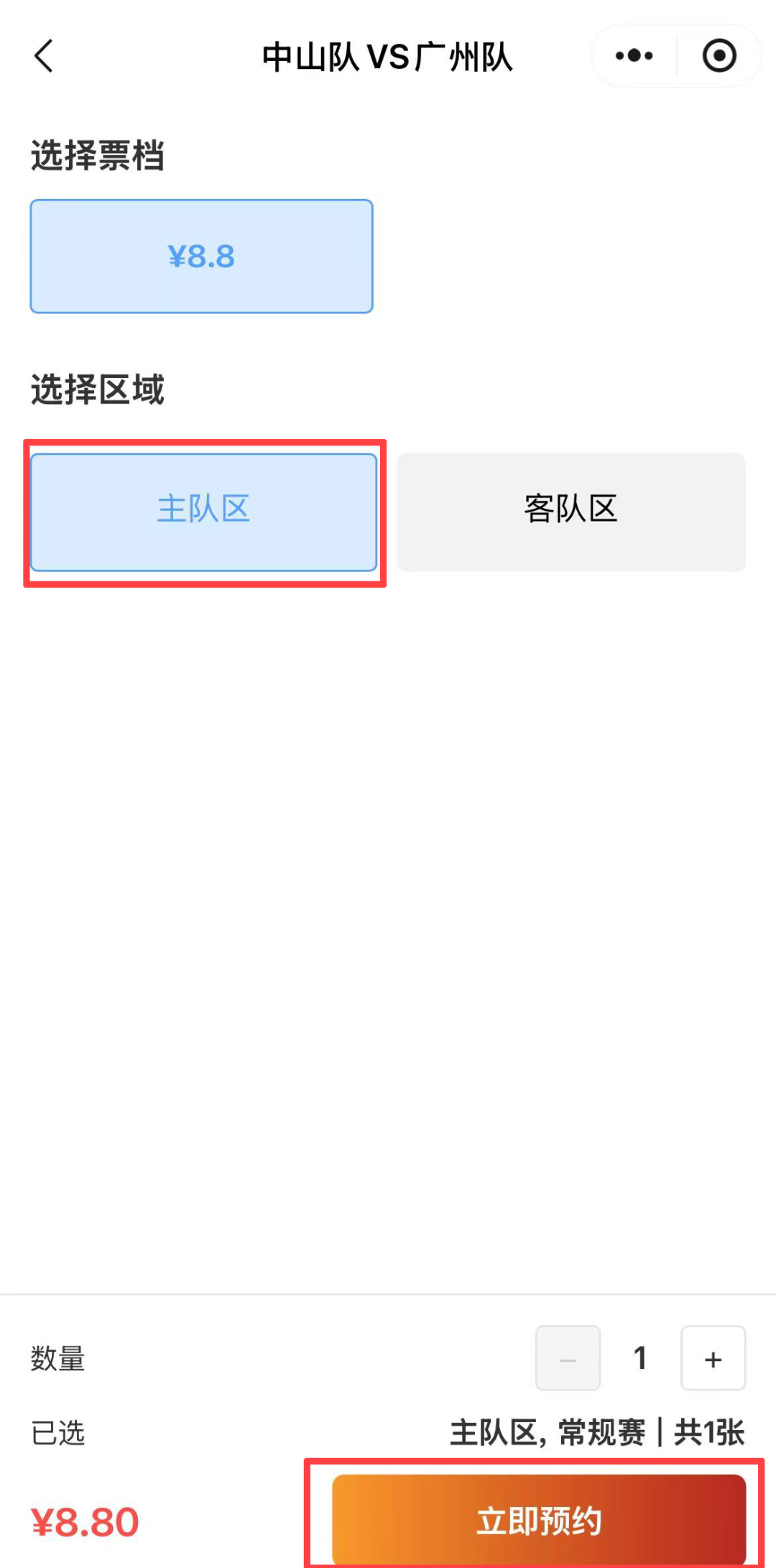 ● 場(chǎng)次選擇:在首頁(yè)選中第二輪心儀賽事場(chǎng)次中山隊(duì)VS廣州隊(duì),優(yōu)選【主隊(duì)區(qū)】。
