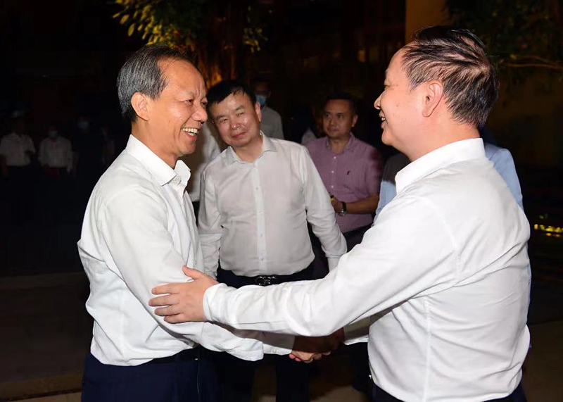 5月26日晚,市委常委會(huì)(擴(kuò)大)會(huì)議結(jié)束后,市委書記郭文海馬不停蹄,前往會(huì)見(jiàn)來(lái)中山考察的廣東省粵港澳大灣區(qū)產(chǎn)業(yè)協(xié)同發(fā)展聯(lián)合會(huì)、深商總會(huì)領(lǐng)導(dǎo)和企業(yè)家一行,推介中山營(yíng)商環(huán)境與投資機(jī)遇,就加強(qiáng)雙方合作進(jìn)行座談交流。
