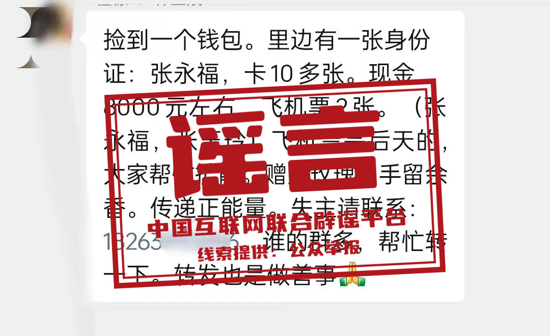 謠 言 多地有人撿到錢(qián)包、接力轉(zhuǎn)發(fā)“失物招領(lǐng)”信息?